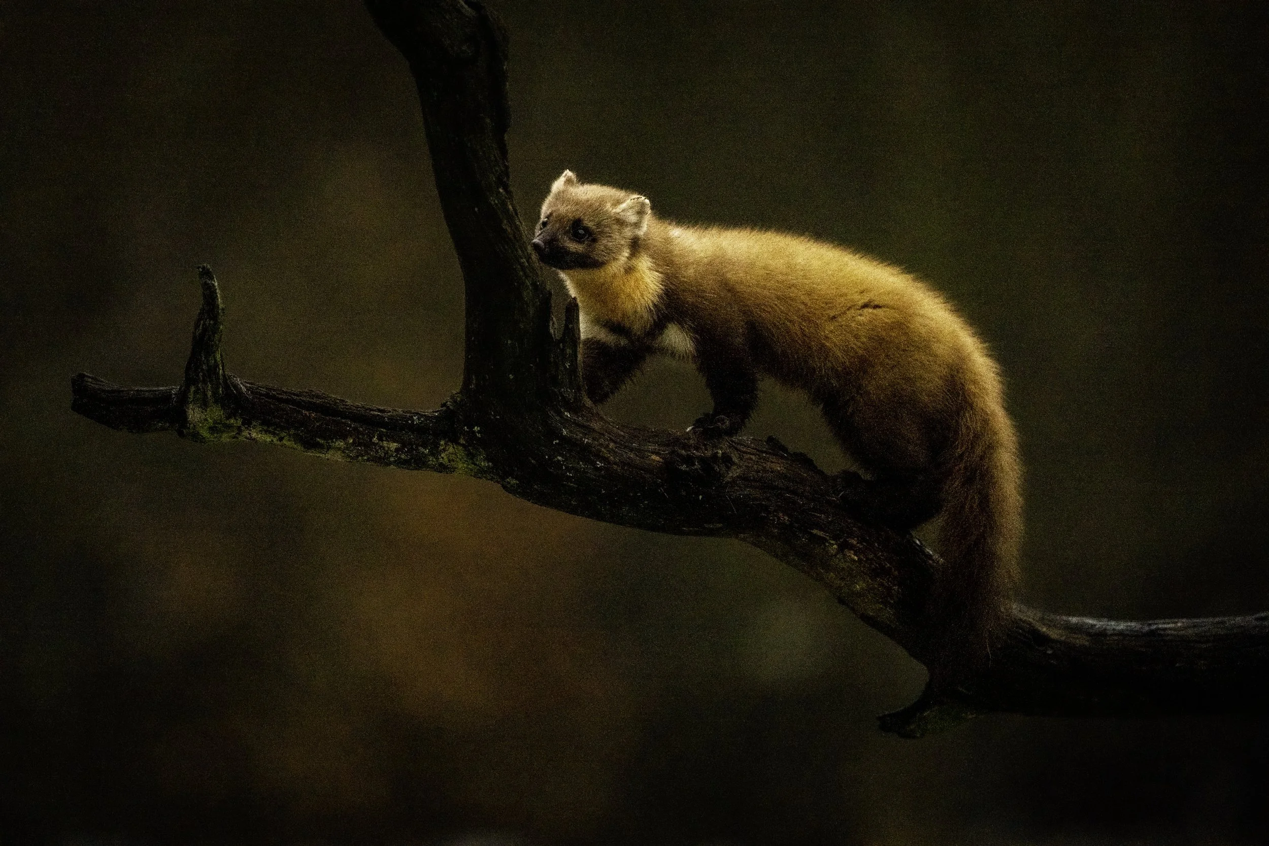 When my companions were done staring at me, we focused on photographing the Pine Marten, as we knew he would not stick around for long. The Pine Marten scampered up a tree stump and posed for us! It’s moments like this that make sitting in a cold, dark, cramped hide for 10 hours worthwhile.