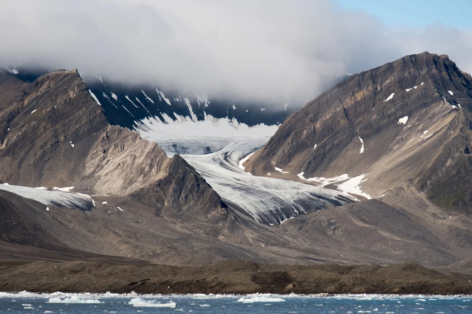 This was taken off Svalbard, in 2016. Out on a small ship in the Arctic, photographing Walrus, we rounded a bend and there this mountain was, in all its beautiful colors.